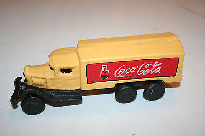 Old Vintage Antique Cast Iron yellow Coca-Cola delivery truck Toy