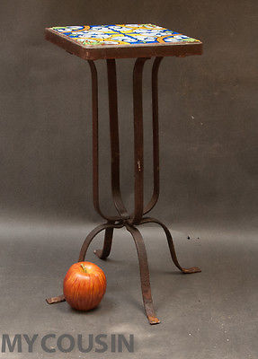 Vintage Arts Crafts Spanish Mission Tile Top Plant Stand Table Wrought Iron Base