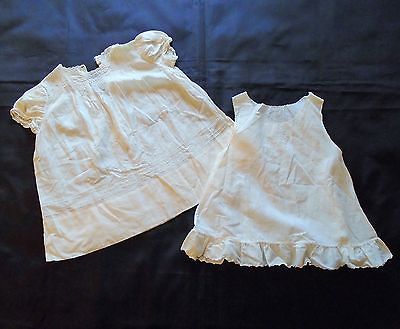 ANTIQUE EMBROIDERED WHITE WORK HAND MADE IMPORTED BABY INFANT DOLL DRESS & SLIP