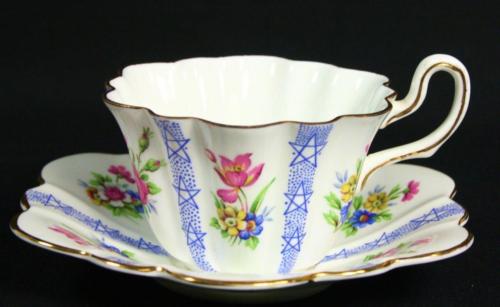 Royal Stuart Tea Cup & Saucer Flower & Stars Bone China White Spencer Stevenson