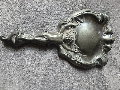 Art Nouveau Deco Pewter finish Hand Mirror with Angel handle