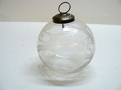 ANTIQUE CRYSTAL ART GLASS WITCH WITCHES BALL WITH ENGRAVED DECORATION