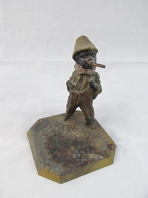 c1900 Austrian Brass NODDER Pipe Holder/Ashtray Black Boy w/Cigar
