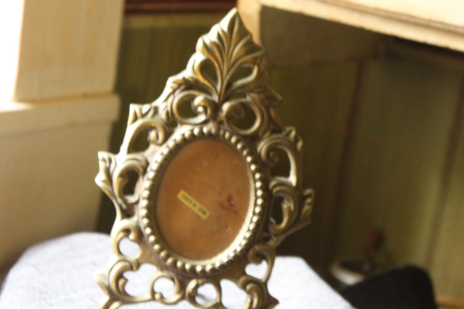 Title (ebay affiliate link): Vintage Metal Brass? Ornate Oval Picture Frame W/ Easel Stand KOREA
