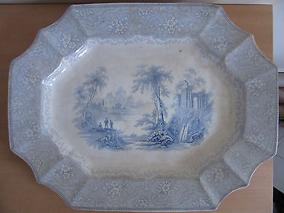 Antique English Ironstone Opaque Transferware Blue Large Platter 20.25" x 15.5"