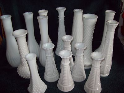 White Milk Glass-Lot of 16-Floral Bud Vases-Vintage