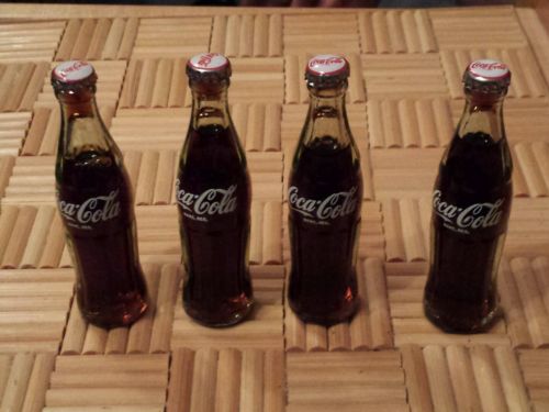Title (ebay affiliate link): 4 pc Coca Cola Miniature Glass Bottles 3" tall. FULL Liquid and Cap