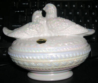 Mother of Pearl OPALESCENT Milk Glass Love Birds by WG
