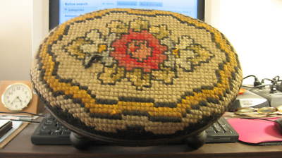 Title (ebay affiliate link): ANTIQUE VINTAGE NEEDLEPOINT FOOT STOOL UNIQUE PATTERN
