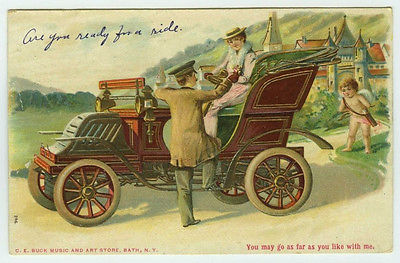 Title (ebay affiliate link): Valentine Couple Car Cupid c1910 Gilt Embossed Postcard