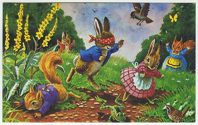 Title (ebay affiliate link): Animal Art Racey Helps Pk 389 "Blind Man's Bluff" Medici Society Rabbits
