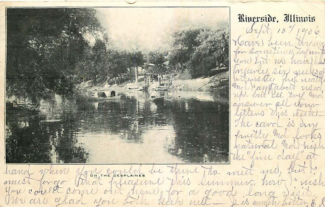 Title (ebay affiliate link): Postcard Boaters on the Desplaines, Riverside, Illinois - used in 1906