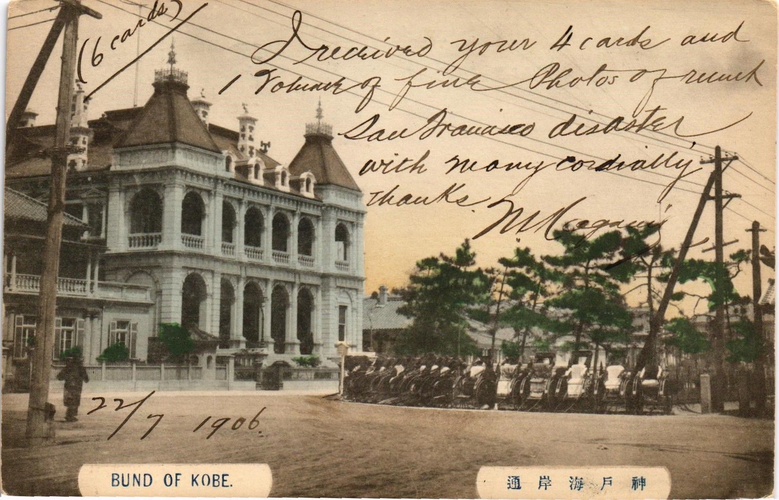 DR JIM STAMPS THE BUND OF KOBE JAPAN POSTCARD 1906