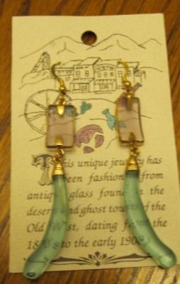 OOAK Antique Glass Earrings Lavendar and Green #3