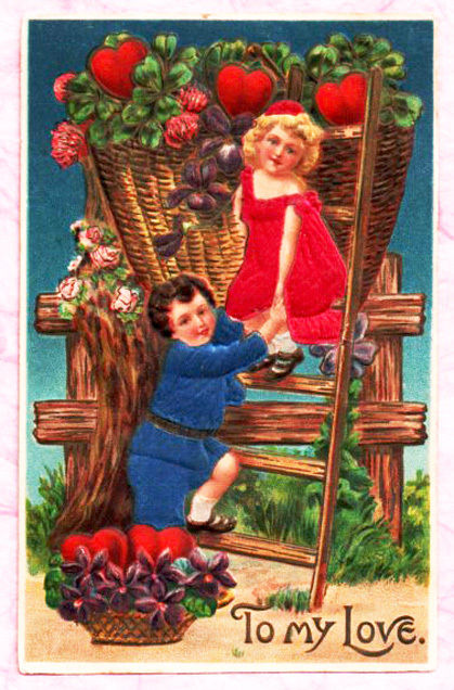 BEAUTIFUL RICH "SILK" DETAIL TO CHILDREN'S CLOTHES, SWEET VALENTINE POSTCARD