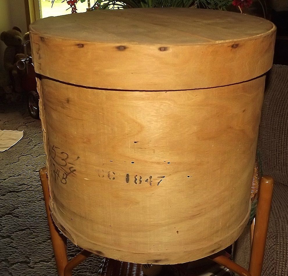 Title (ebay affiliate link): Vintage Large Round Wooden Cheese Box w/Lid -Neat Home Decor/Storage Container