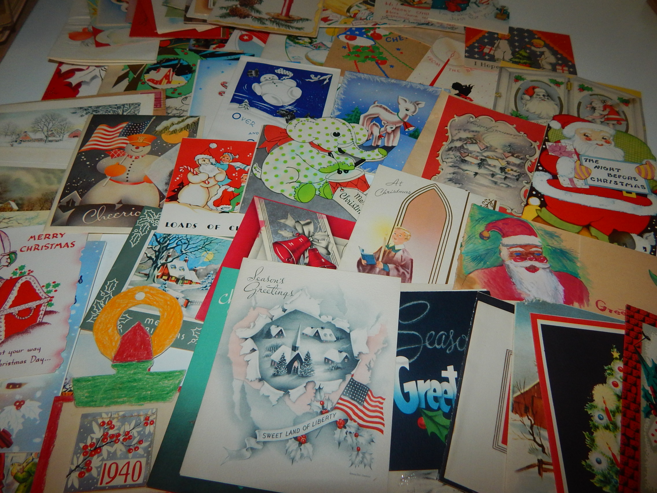 HUGE lot of Vintage Christmas Greeting Cards Santa Cartoon 1940s 50s Retro