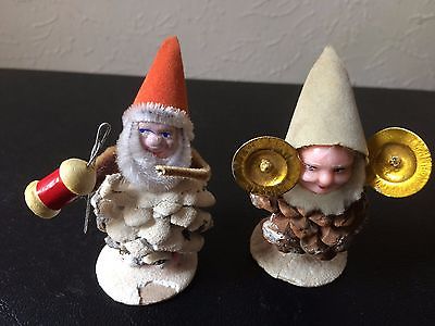 VINTAGE Japan Christmas Ornament Pinecone ELF Pair Cute Fun One holding Lantern