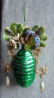 Title (ebay affiliate link): VTG.GLASS BEADED VASE WITH FLOWERS CHRISTMAS TREE ORNAMENT