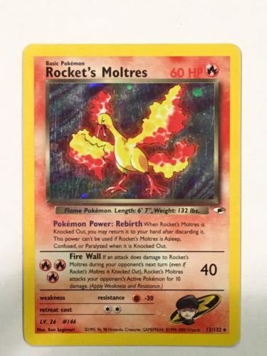 Title (ebay affiliate link): Rocket's Moltres Holo 12/132 Gym Heroes Pokemon Card