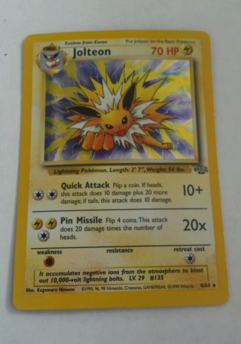 Title (ebay affiliate link): POKEMON JUGNLE SET Jolteon HOLO 4/64 1999 Wizards RARE!