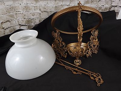 VINTAGE GILT METAL OIL LAMP CEILING HOLDER WITH OPAQUE GLASS SHADE !!!