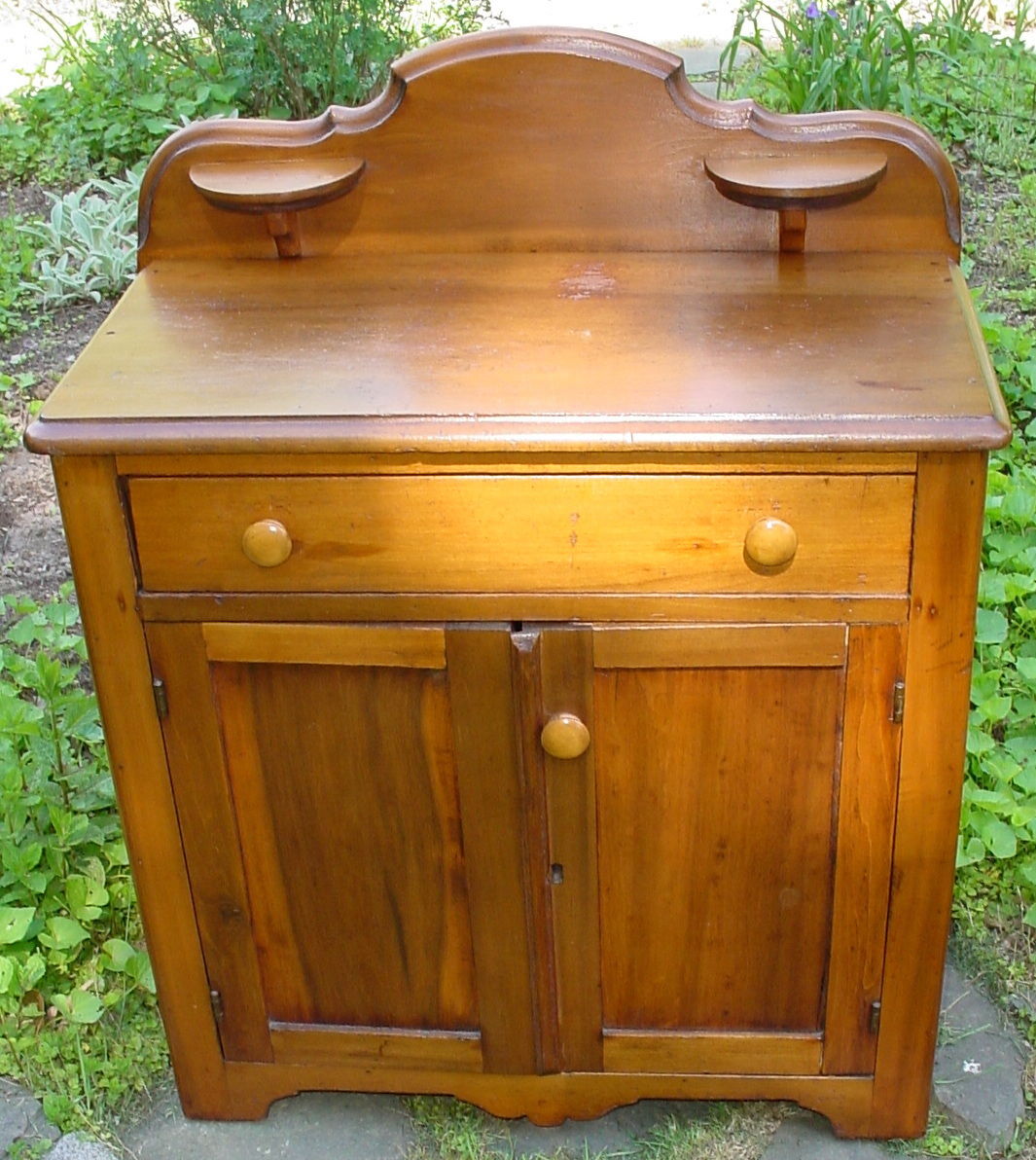 Title (ebay affiliate link): Antique Pine Wash Stand Gallery + Candle Shelf & Drawer 2 Doors Furniture Chest