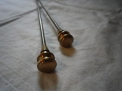 Library Card Catalog Rods VINTAGE cabinet hardware BRASS knob 16.75" Lot of 2 VG