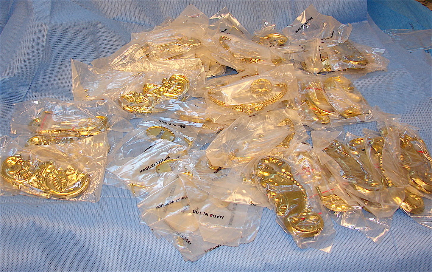 Antique Style Reproduction Brass Dresser Hardware Lot===over 50 pieces