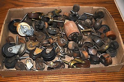 Antique Wood and Metal Casters Vintage Box Lot over 55 Pieces Furniture Table ..