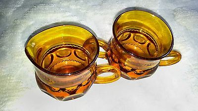 "LOOK" AMBER DEPRESSION GLASS CREAMER & SUGAR BOWL MOONS?????