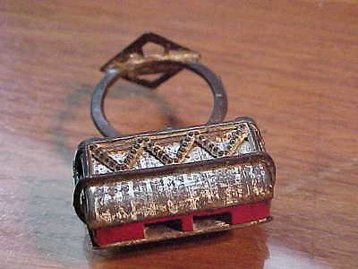 Dime Store Toy Harmonica Ring With Embossed Elephant Soft Metal Japan