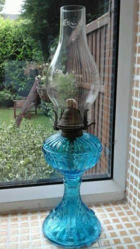 Title (ebay affiliate link): Attractive vintage blue glass fish serpent oil lamp