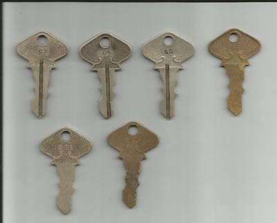 6 Model T Ford Script Keys, Numbers 63, 64, 65, 66, 67, 68
