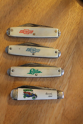 Lot of 4 car advertising pocket knives Chevrolet Cadillac Buick 2 blace