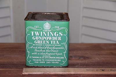 Title (ebay affiliate link): Vintage Twinings Tea Tin Box England 8 ozs 227 grams Advertising Gunpowder Green