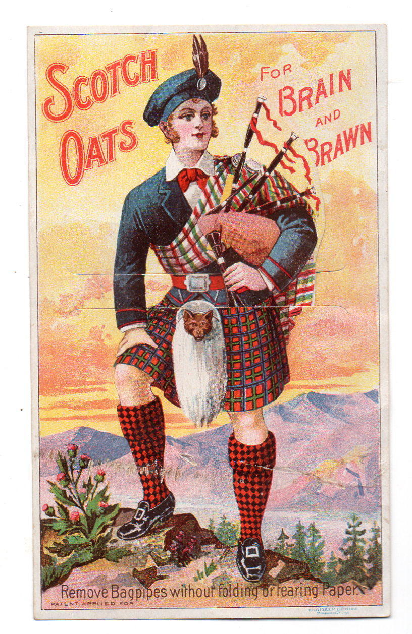 Title (ebay affiliate link): Scotch Oats Brain & Brawn Mechanical Bagpipes Victorian Trade Card circa1890