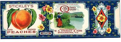 Strasburg VA Vintage Paper Can Label Lithograph Stickley Peaches