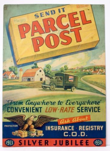 Original 1938 Parcel Post Silver Jubilee Poster U.S. Mail Package COD UPS FedEx