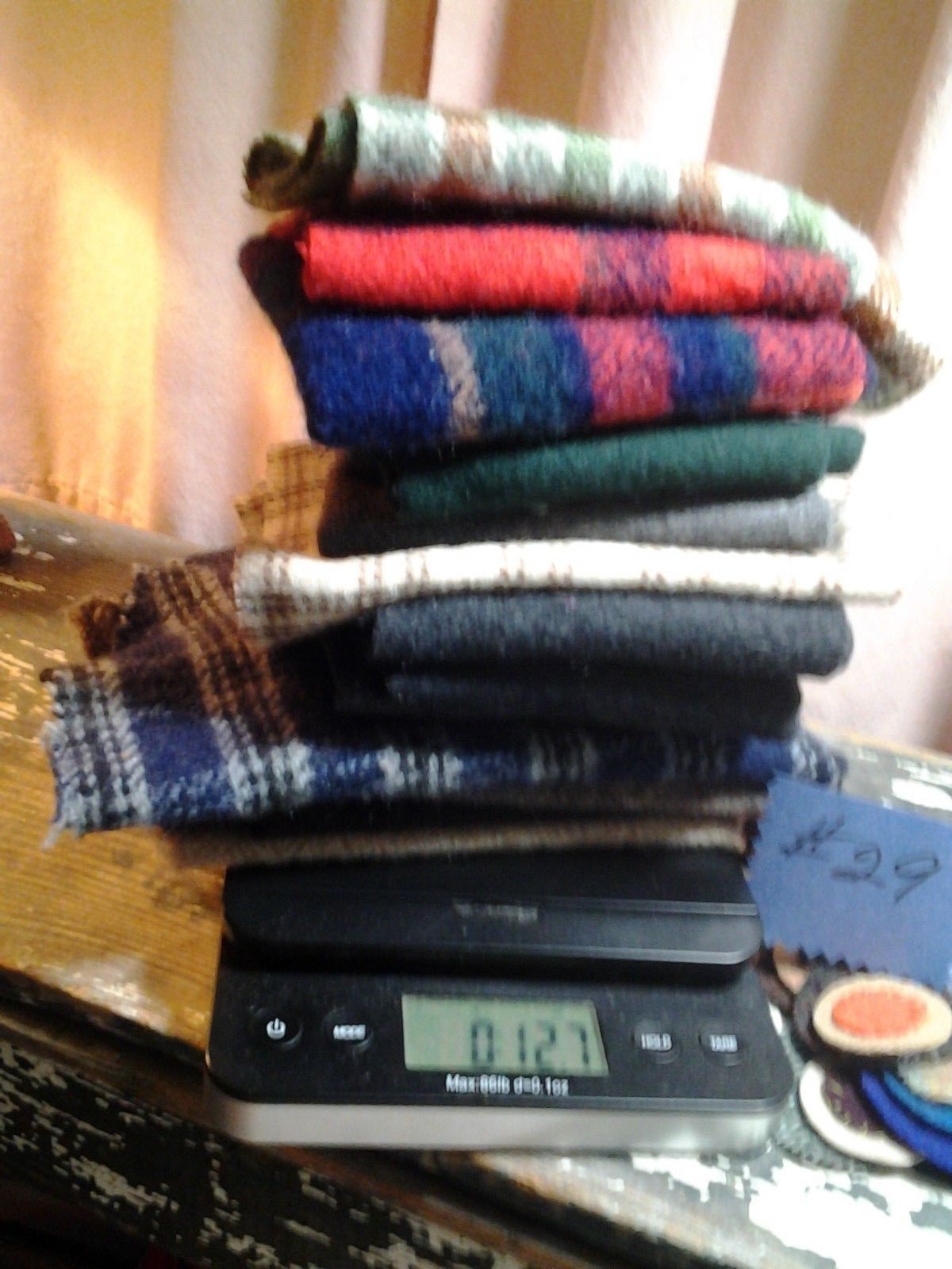 Title (ebay affiliate link): Wool fabric scraps for doll crafting, bears penny rugs etc 12+oz lot 29