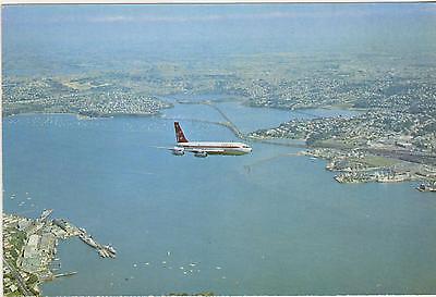 QANTAS 707 FLYING OVER AUCKLAND NZ STAMFORD POSTCARD C1970