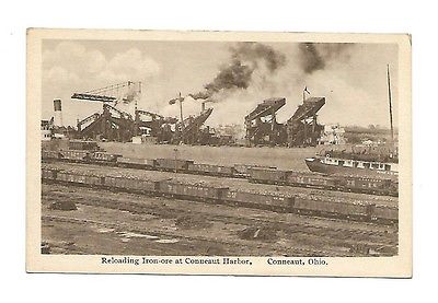 Title (ebay affiliate link): CONNEAUT OH POSTCARD 1920'S ERA LOADING IRON ORE AT HARBOR RAILROAD SHIPS