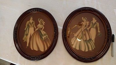 Pair Vintage Ornate Oval Picture Art Wood Frame with Victorian Couple Print