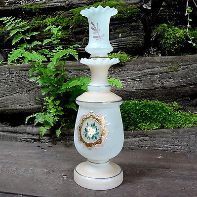 Title (ebay affiliate link): Hand Painted Bristol Glass Perfume or Barber Bottle Dobber & Pontil 10.5" tall