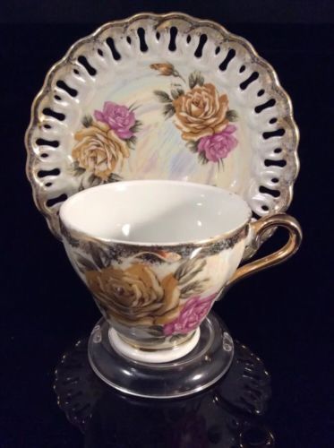 Title (ebay affiliate link): Royal Sealy Iridescent Reticulated Cup & Saucer Gold And Pink Roses #89/5A