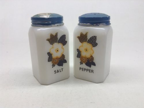 Vintage Pr Of White Milk Glass Salt And Pepper Shakers With Flowers