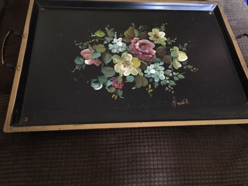 VINTAGE NASHCO PAINTED TRAY Unusual, Music box on bottom