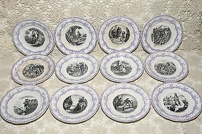 Antique French HB&Cie complete set of 12 Jeanne D'Arc-St. Joan of Arc plates