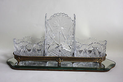 Antique Crystal Epergn Centerpiece with origial mirror base & metal footed base.