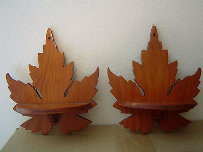 VINTAGE 2 SMALL HANDMADE WOOD KNICK KNACK SHELVES MAPLE LEAF SHAPE